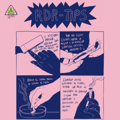 Viñeta dirigida a personas usuarias de cannabis y asociaciones cannábicas, con diferentes consejos sobre el consumo de cannabis.