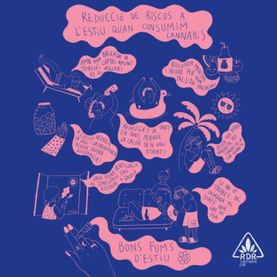 Cartel dirigido a personas usuarias de cannabis y asociaciones cannábicas, con diferentes consejos sobre el consumo de cannabis en la estación de verano.